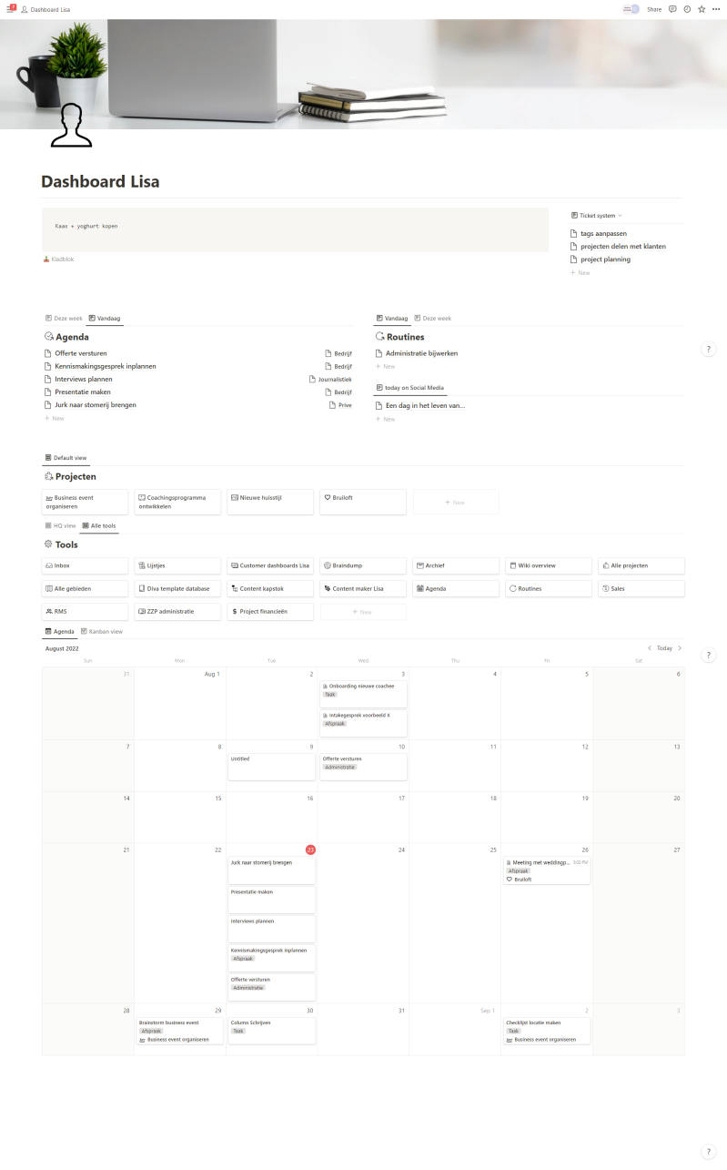 Maar ook dat alles op 1 plek staat. Je weer structuur hebt in je hoofd. En overzicht van al jouw taken en data.